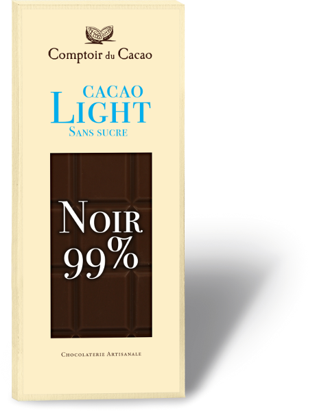 - Les bienfaits d'un cacao 99% sans amertume acide et sans l'apport calorique du sucre.