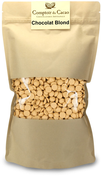 Ingrédients:Chocolat blanc au caramel pur beurre de cacao. Sucre, beurre de cacao, poudre de lait entier, poudre de lait écrémé, lactosérum en poudre, sucre caramélisé, émulsifiant (lécithine de soja), arôme naturel de vanille, sel. Les fèves de cacao sont originaires de l'Afrique de l'Ouest.