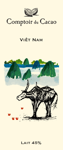 Ingrédients:Chocolat lait pur beurre de cacao (minimum de cacao: 45%). Sucre, beurre de cacao, pâte de cacao, poudre de lait entier, arôme naturel de vanille. Peut contenir des traces de: gluten, soja, fruits à coques. Les fèves de cacao sont originaires du Vietnam.