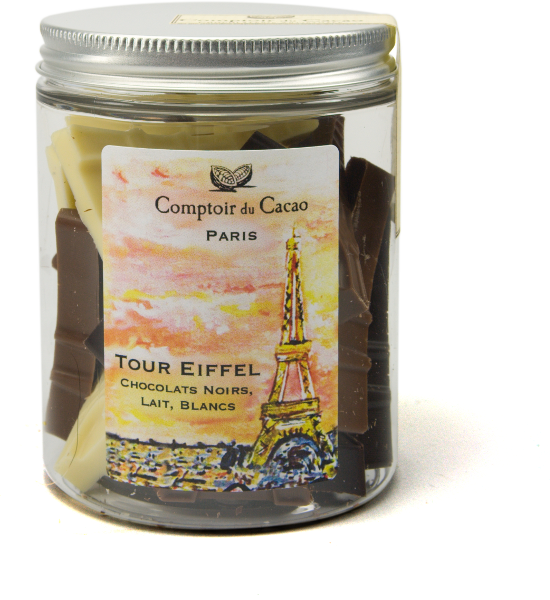 Ingrédients:Chocolats noir, lait & blanc pur beurre de cacao (minimum de cacao: noir 72%, lait 36%). Pâte de cacao, sucre, poudre de lait entier, beurre de cacao, émulsifiant (lécithine de soja), sel, arôme naturel de vanille, vanilline. Peut contenir des traces de: gluten, fruits à coques. Les fèves de cacao sont originaires de l'Afrique de l'Ouest.