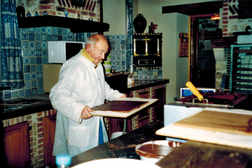 Tout commence donc comme ceci. Nous sommes dans les années 90, trois générations à l'ouvrage se mêlent dans la petite cuisine familiale au carrelage bleu. Un fils rêvant de pâtisseries et de chocolats, des parents visionnaires et audacieux, et des grands parents toujours là pour mettre la main à la pâte. C'est donc au Domaine de l'Anche, où la famille accueillait mariages et réceptions, que l’on commença à produire nos premiers pralinés feuilletés. Puis, petit à petit, le coin traiteur se transforma en laboratoire de chocolat, le dancefloor en salle d'emballage, la grande salle de réception en boutique, la terrasse en bureau. En janvier 2001, l’entreprise s’officialise et devient Le Comptoir du Cacao ! Il fallait de l'imagination, de l'envie et beaucoup d'amour pour le chocolat. C'était un doux rêve, aujourd'hui devenu réalité.